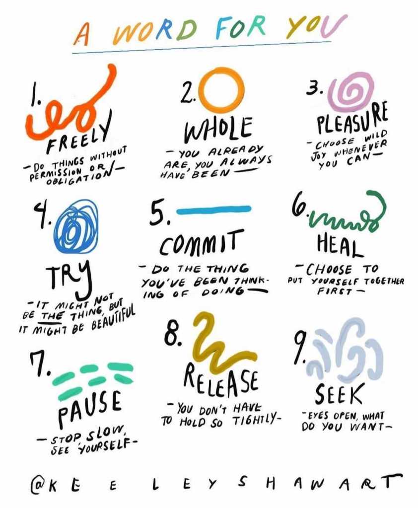 When I heard about this process in 2020, it was a combination of two sources that I found invaluable. Firstly, Susannah Conway provides a free workbook to ‘Find Your Word’ – read the accompanying article to see how her words have guided her and been more useful that New Year’s resolutions!